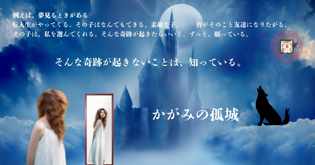 そんなある日、自分の部屋にある姿見の中に吸い込まれ、異世界の城に招かれてしまいます。そこには、こころの他に6人の子どもたちと一匹の狼がいました。狼は、7人の子どもたちをまとめて「赤ずきんちゃん」と呼び、彼ら彼女らが迷い込んだ異世界の城の中に〝願いの部屋〟があるといい、7人のうち、たった一人だけの願いを叶えることが出来ると言います。