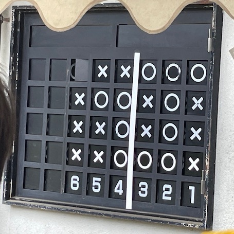 初めて見る弓道場には、思った板よりも遙かに多くの人がいて、選手の高校生はもちろん、保護者の数も多く、射場と矢道、そして的が一度に見渡せる生け垣の最前列を確保するのが大変でした。的場には点数表があって、的に中れば〇が、外れれば×が表示されるようになっています。